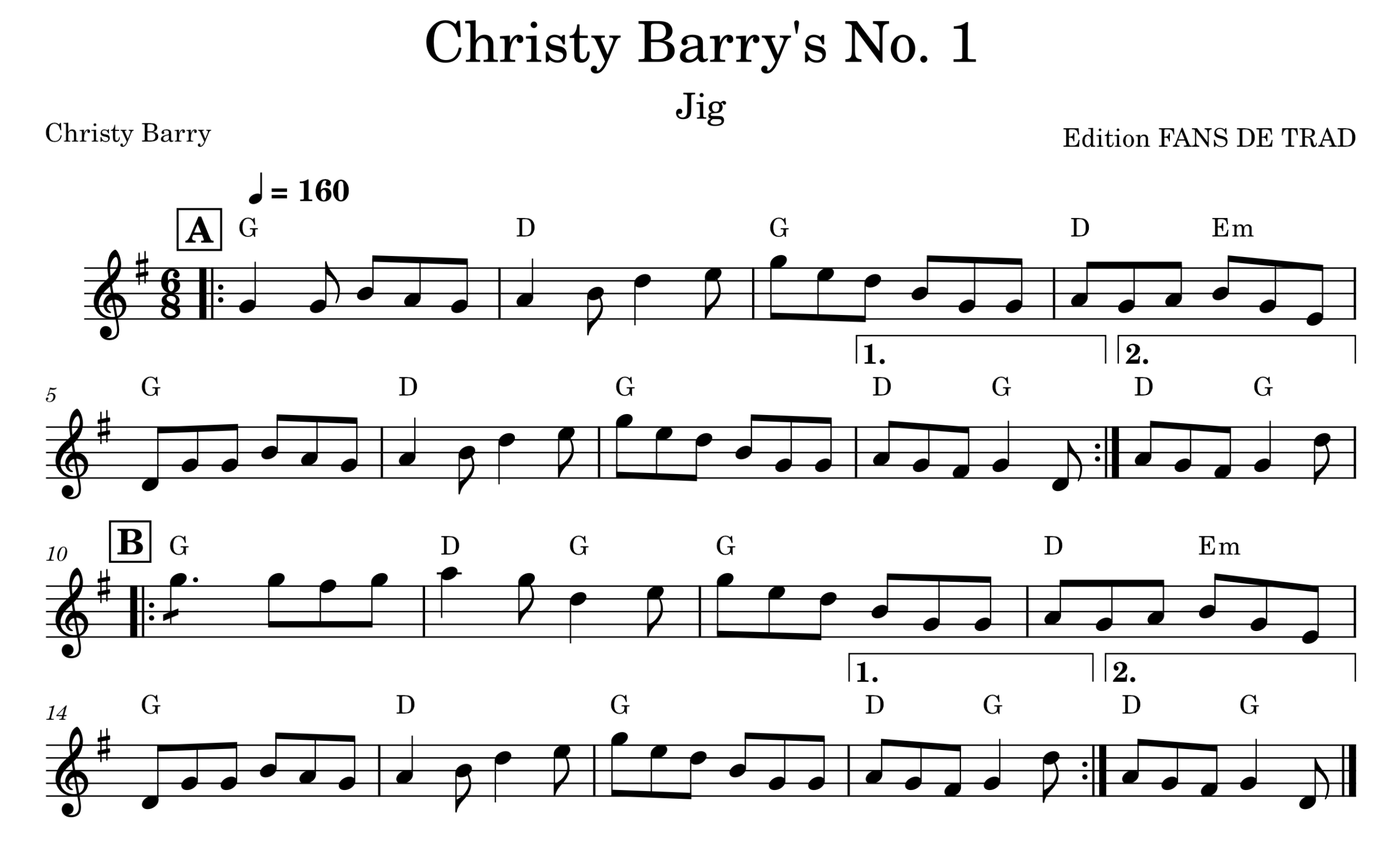 « Christy Barry’s » est une gigue irlandaise traditionnelle écrite en sol majeur . Cet air fait partie de la riche tradition de la musique folklorique irlandaise et est couramment joué lors de sessions de musique traditionnelle à travers le monde.