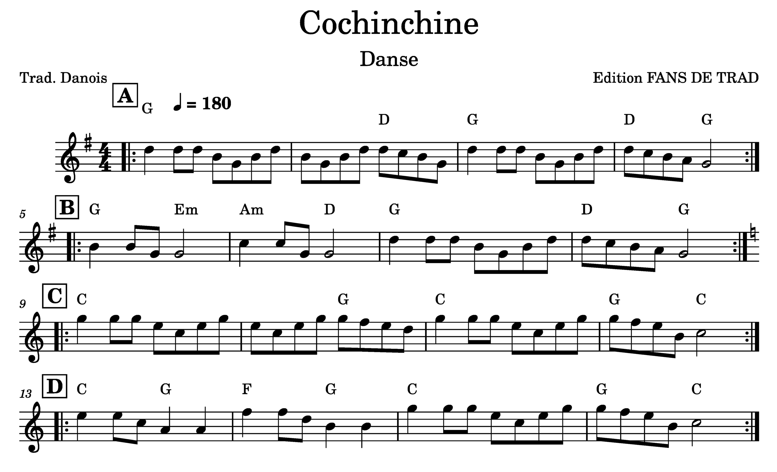 Partition pour instrument en Sol/Do. Musique Danoise. Arrangement = AA BB AA BB CC DD