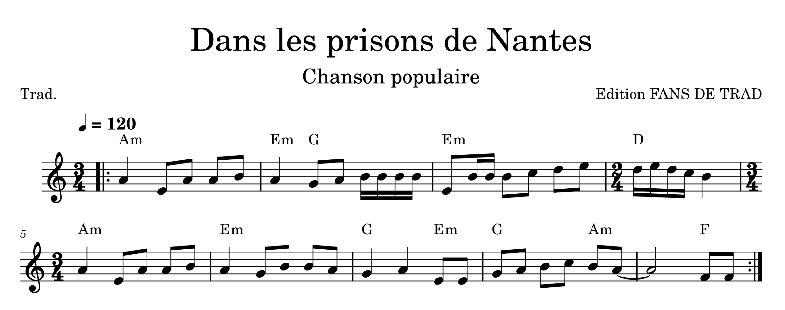 « « Dans les prisons de Nantes » est une chanson originaire de Basse-Bretagne à la fin du XVIIe siècle, dont l’auteur est inconnu. (Refrain) digidi lan di lan digidigidan Dans les prisons de Nantes Y’avait un prisonnier Y’avait un prisonnier »