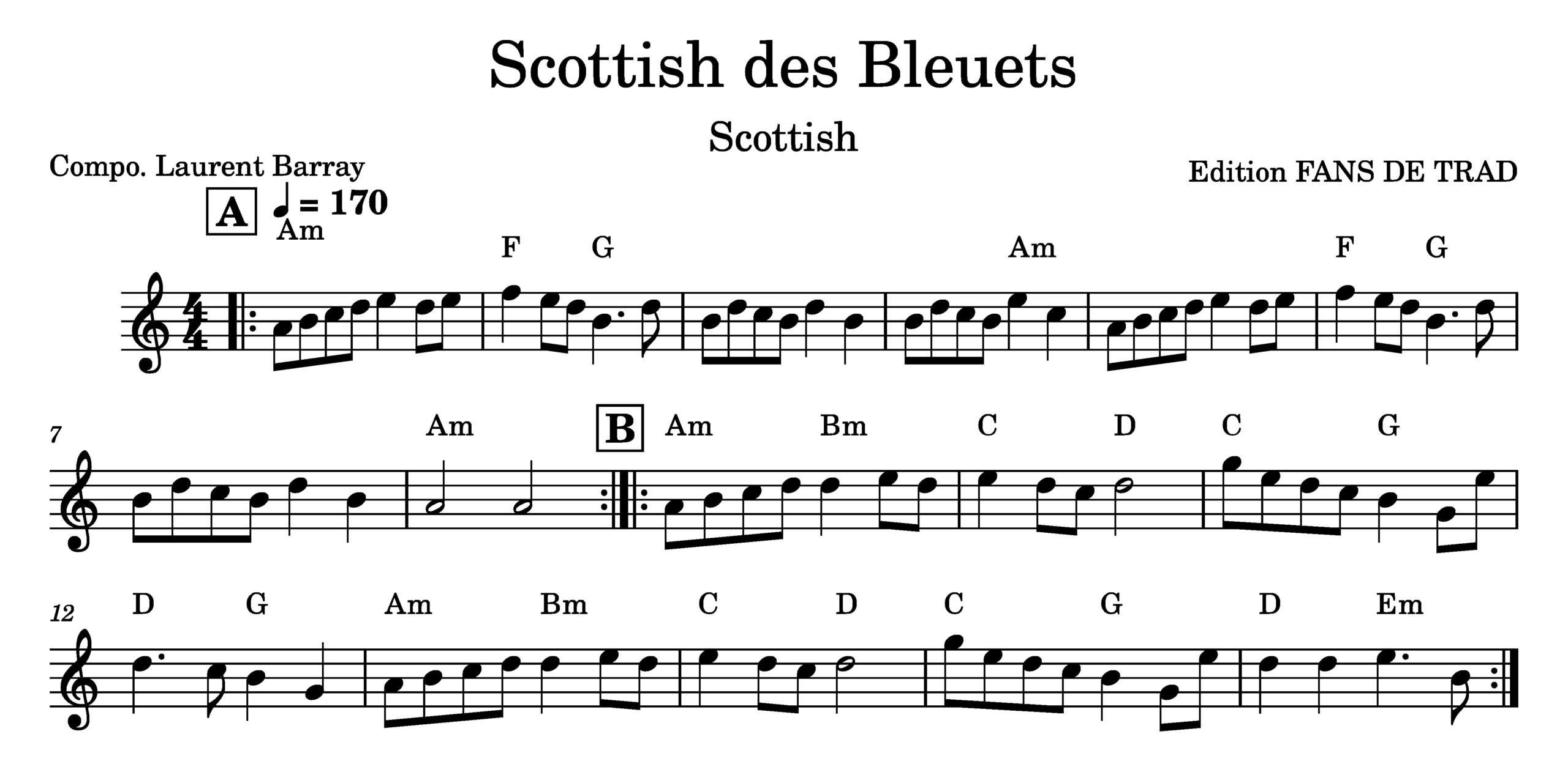 Partition pour instrument en Sol/Do. Musique de Laurant Barray de l’album « Le Jardin Oublié ».